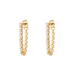 The Luv AJ Ballier Chain Studs are high polish 14k gold plated earrings that are 0.95" long. These pieces feature a thin chain that is finely detailed by sparkling white crystals.