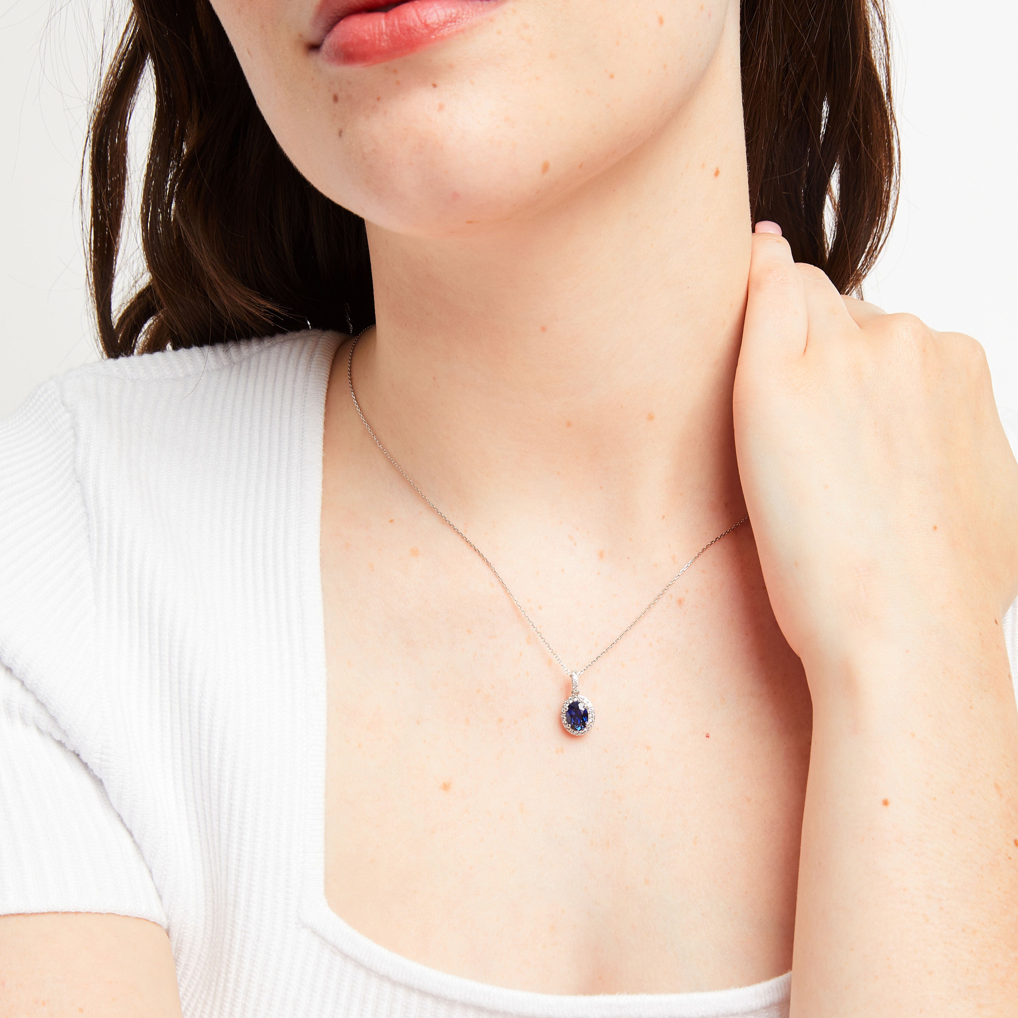 Kay Oval Lab Grown Blue Sapphire Solitaire Pendant Necklace