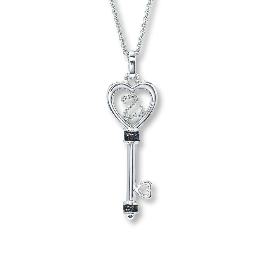 Pre-Owned Kay 1/6ct Diamond Open Hearts Key Pendant Necklace