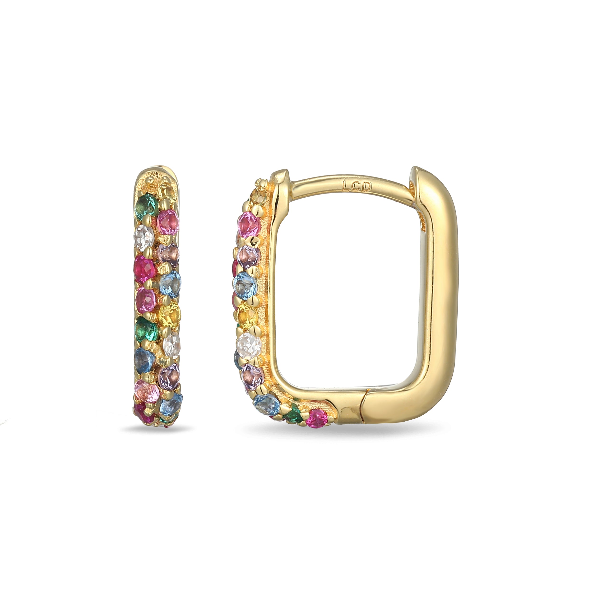 Multi Lab Grown Gemstone & Lab-Grown Diamond Hoop Earrings 1/20ct tw 24K Yellow Gold Vermeil Sterling Silver