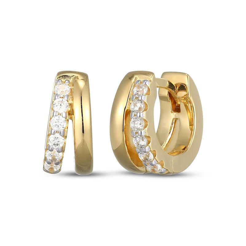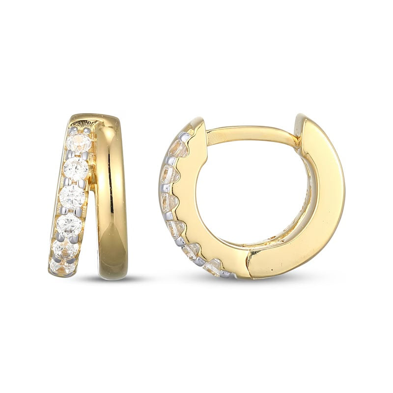 Lab-Grown Diamond Double-Row Split Huggie Hoop Earrings 1/5 ct tw 24K Yellow Gold Vermeil Sterling Silver