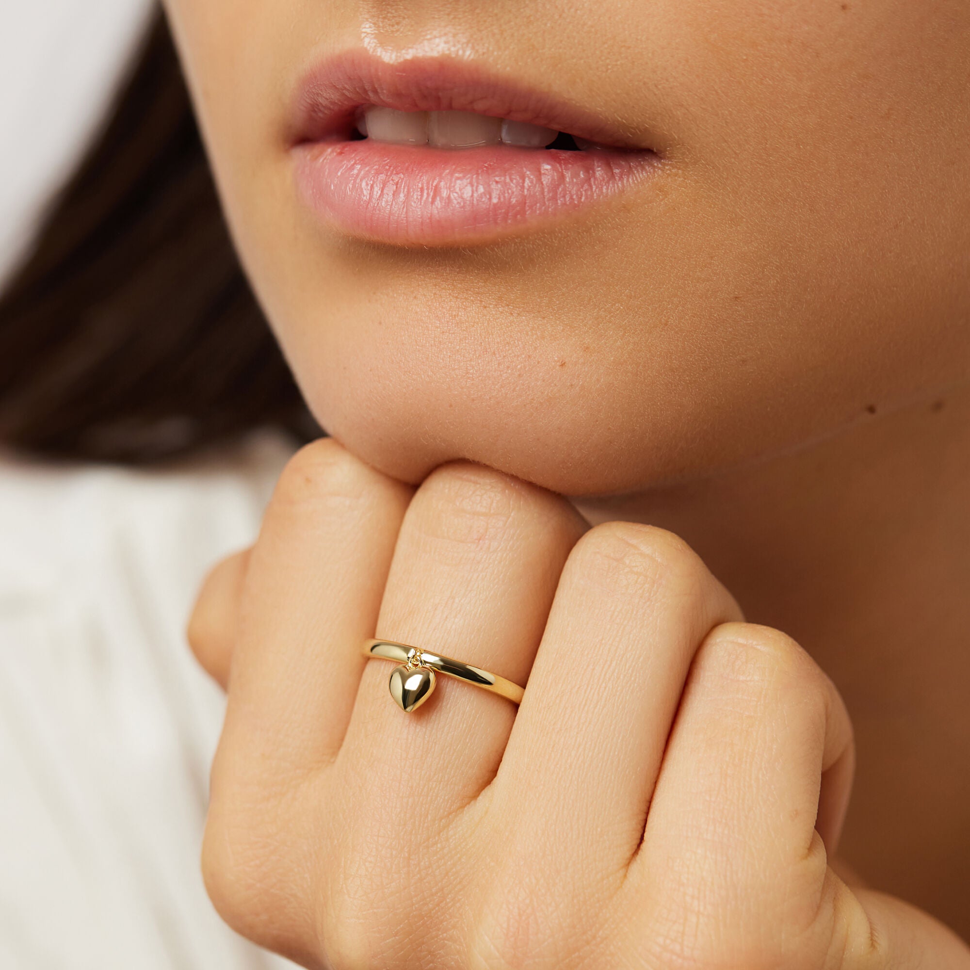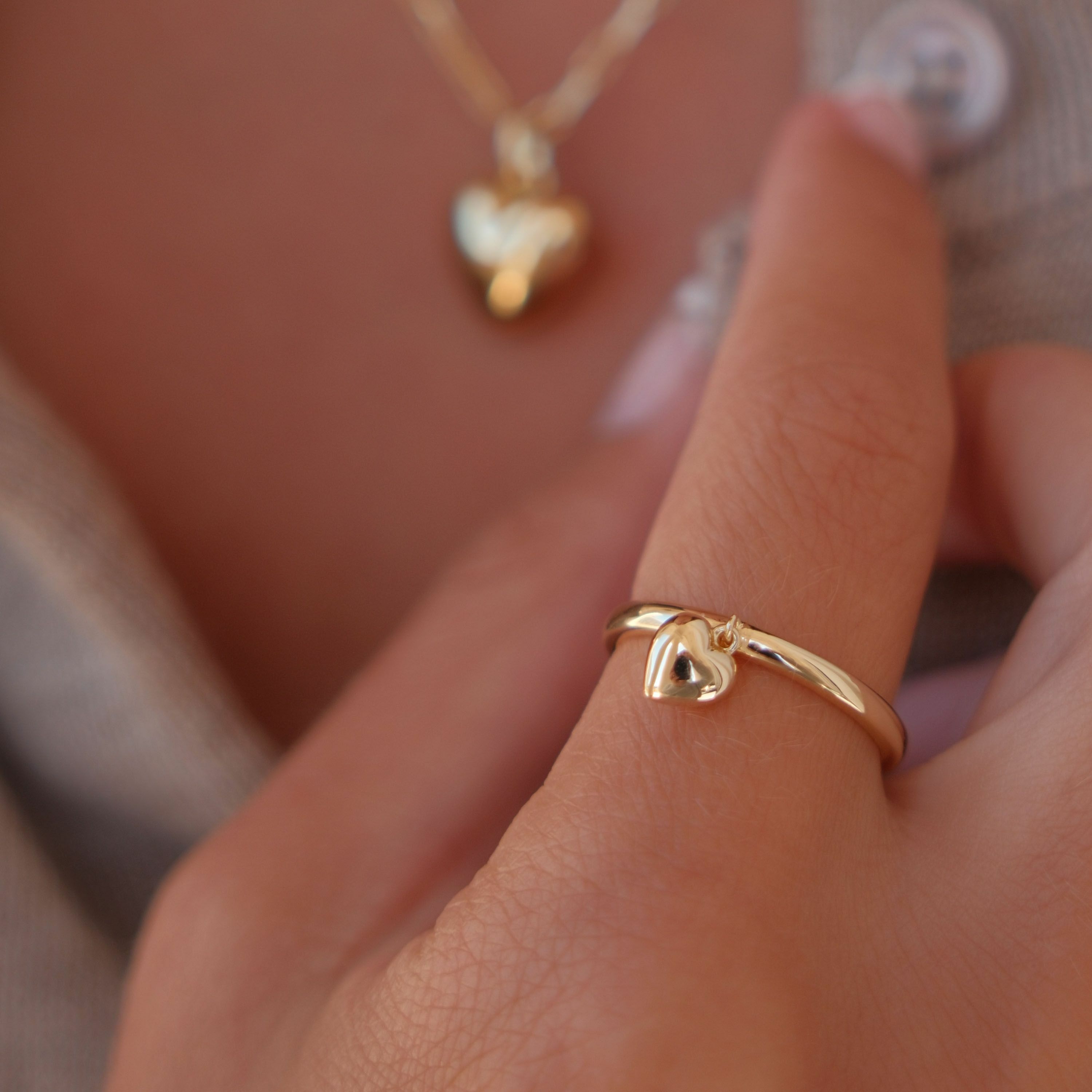 So charming and lovely, this delicate heart ring is designed to fit seamlessly into your favorite stack. Dipped in 14k gold with a shiny finish and puffy heart charm, this piece is the perfect finishing touch to any look.
