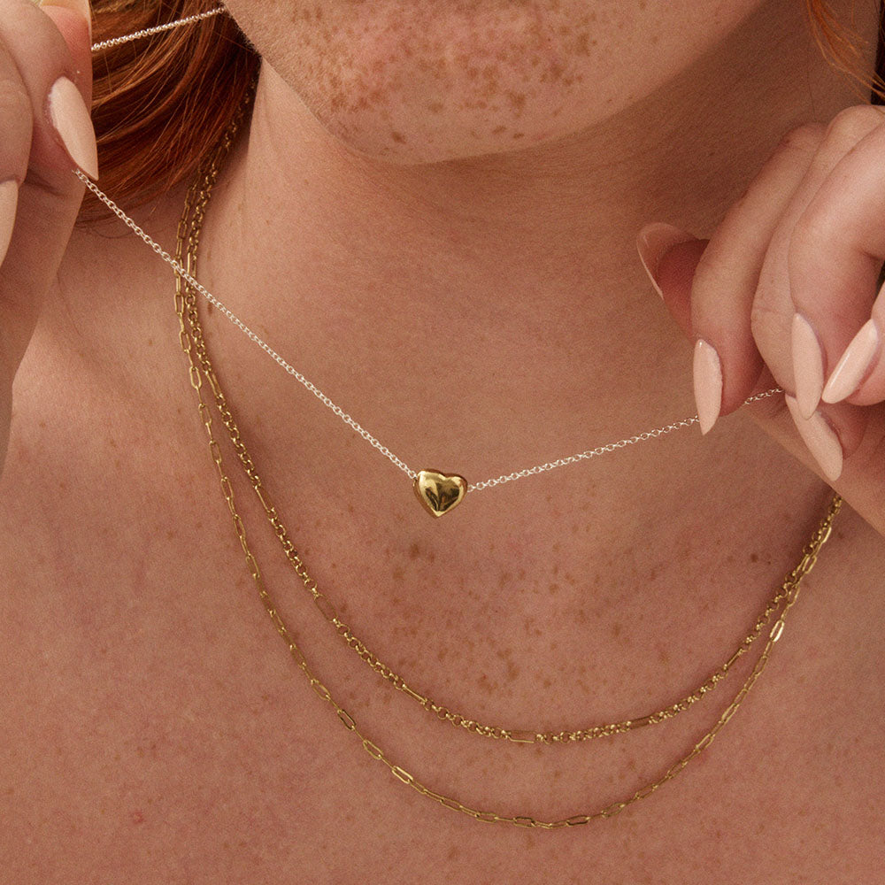 Water Resistant Mixed Metal Puffy Heart Pendant Necklace